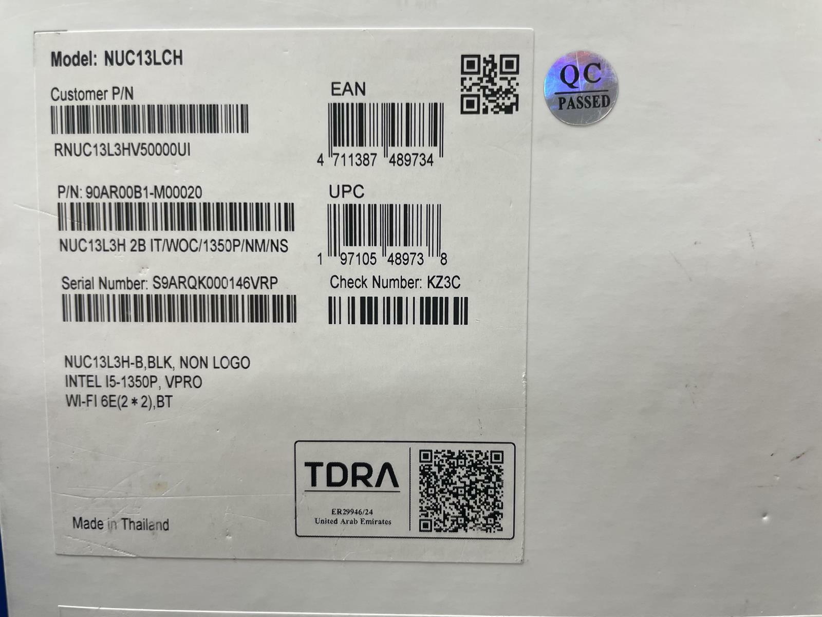 ASUS NUC 13 Pro NUC13L3H-B UCFF Core i5-1350P 16GB 512GB NVMe WIN11 -Excellent